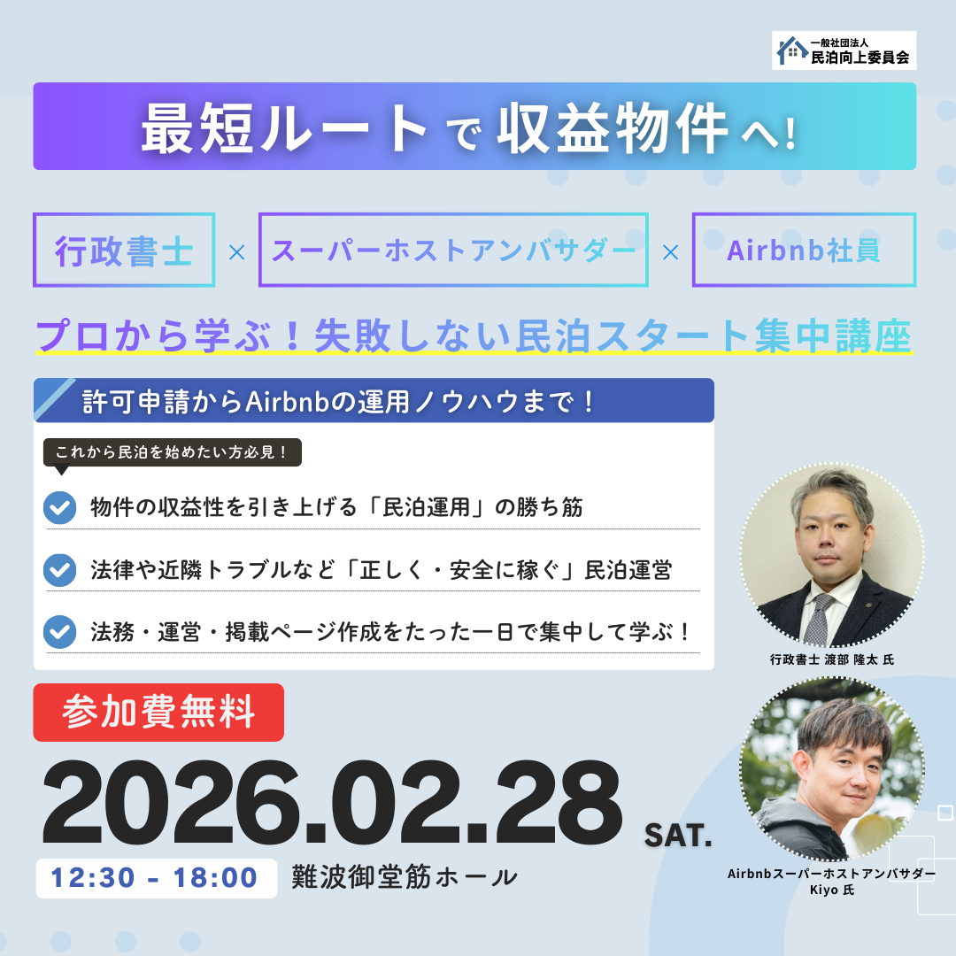 民泊スタート集中講座~大阪